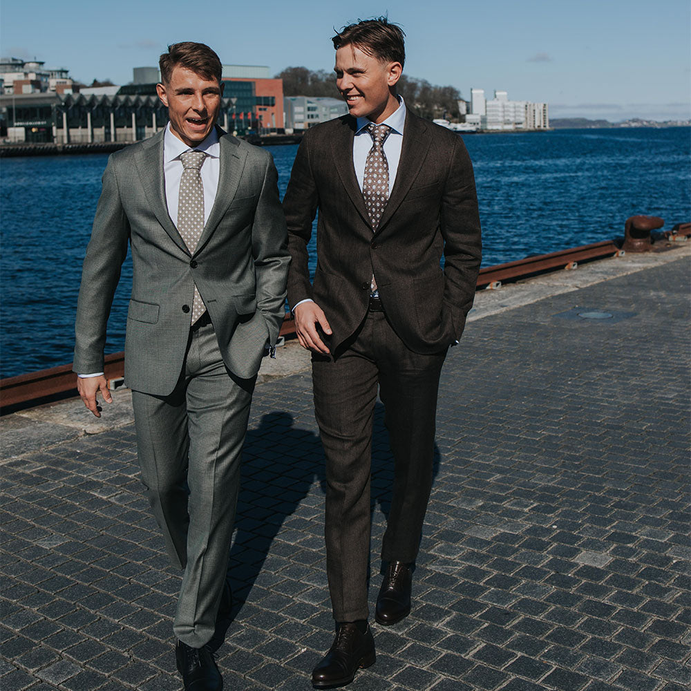 Vi hjelper deg med å finne dressen som oppfyller kriteriene og får den sydd til nettopp deg. Vi hjelper deg også med å finne den perfekte skjorten, skoene, slipset og mansjettene til den store dagen.